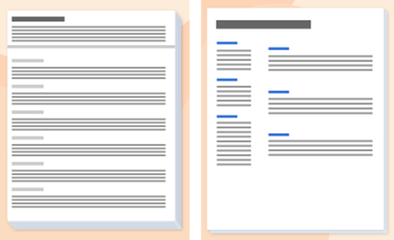 - Un texte trop peu dense : c’est souvent le signe que vous présentez vos expériences de façon trop générale et que vous n’avez pas compris qu’on veut voir jusqu’aux tâches que vous avez réalisé. Un CV comme celui là semble dépourvu de contenu et indiquera que vous n’avez pas passé assez de temps à l’œuvre.